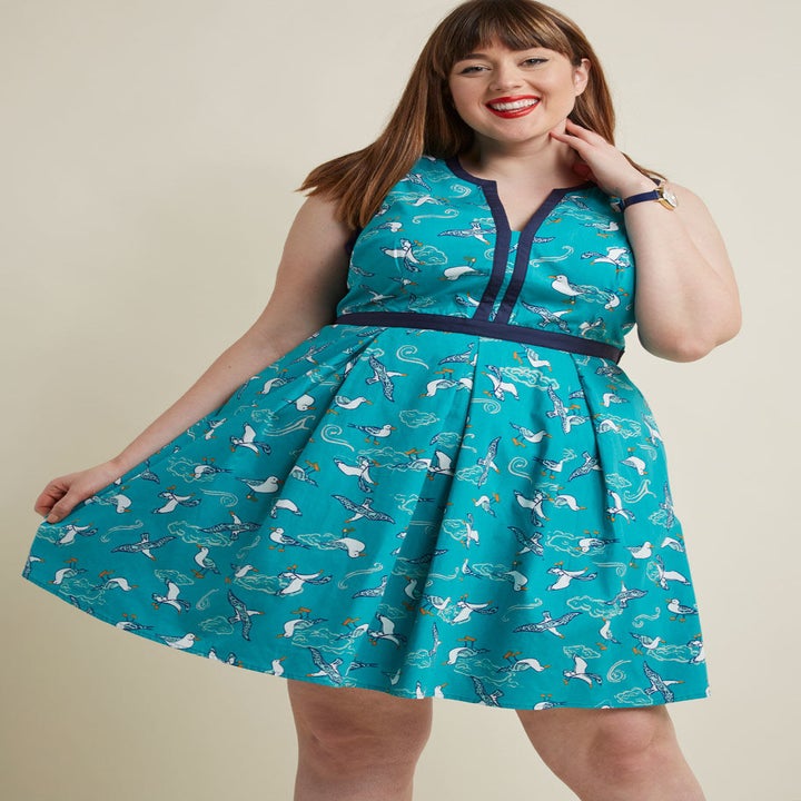 20. A flare dress featuring fun mermaid/seagull prints you'll want to wear over and over again.