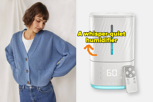 10. A whisper-quiet ultrasonic humidifier that'll help you breathe easy when lounging at home. It has adjustable cool and warm mist to help moisturize your skin, clear your sinuses, and relieve allergies. It also has a guided meditation mode that allows you to follow a breathing pattern projected by its lights.