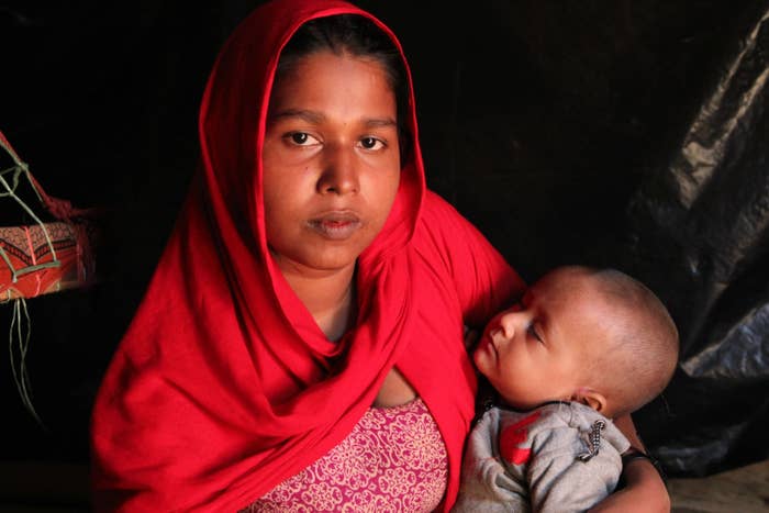 Shajeda Khan, 19, and her family fled Myanmar last year with her then seven-month-old baby on her hip.