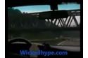 A body of something humanoid looking "flies" head on into a car, causing a crash.