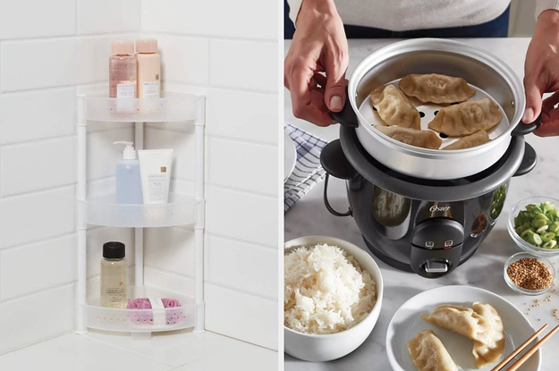 18. A tri-level tower shower caddy because you have too many bath products trying to exist in one habitat (and not nearly enough shelf space). This utilizes the empty corner space in your shower and gives you three whole shelves to work with!