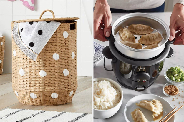 16. A rice cooker that's equipped with a built-in steaming tray — which means you can cook up to 6 cups of rice *while also* being able to simultaneously steam dumplings, veggies, tofu, and so on. Essentially, you can make a whole meal with just one appliance. It's as easy as using a microwave, but you can make way more kinds of meals!