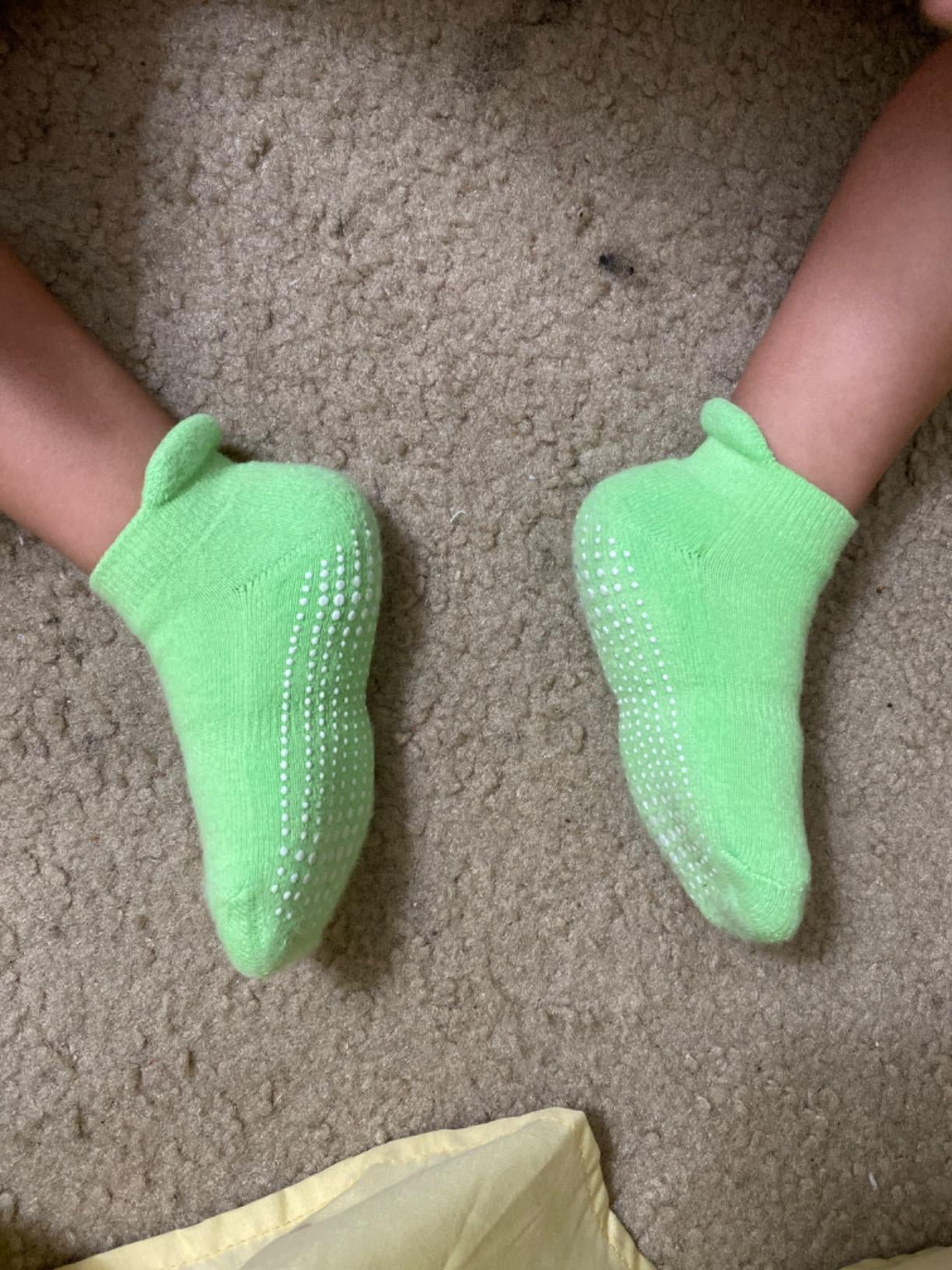 Promising review: "These are great grip socks! They fit my 2-year-old daughter, with room to grow. They don't slip off either which is a huge plus. They also don't shrink when washed or loose their grip-ness. The colors are bright and so fun! They are thicker than her normal socks for shoes, but her shoe was still able to fit, just more snug. She didn't wear shoes with them for very long though. I donated a few pairs to her daycare for other kids to wear and all of the teachers complimented the socks. Must-have for busy toddlers!" –Erin Gioia