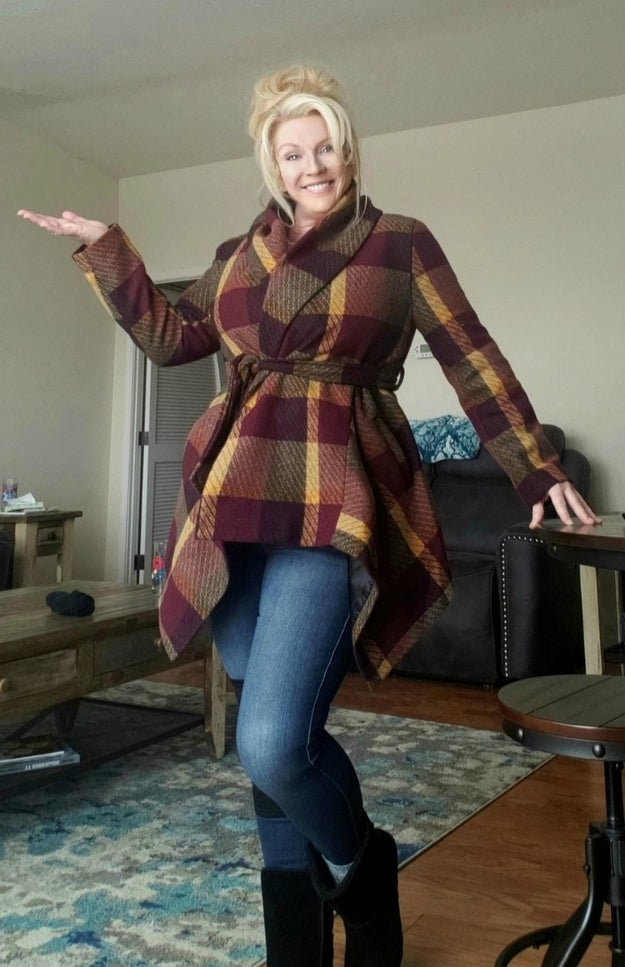12. A slouchy, relaxed plaid shirttail hemmed version that's the closest thing you'll get to wearing your favorite cozy sweater out (or your favorite wool blanket) while having everyone at work NOT ONLY think it's professional but also think it's stylish. That pretty much makes you and this coat a dream team.