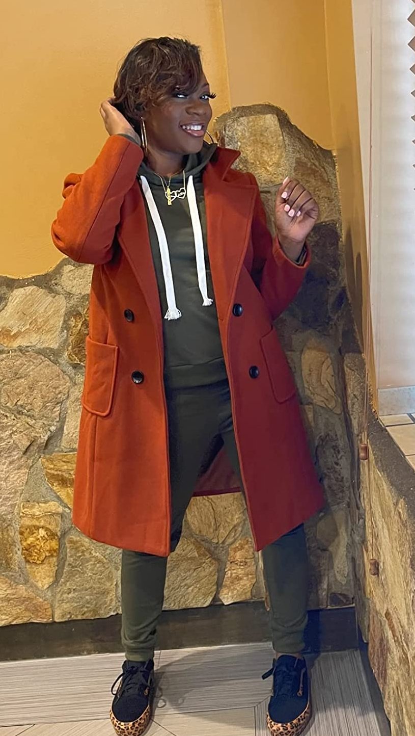 1. A classically fashionable tailored topper that's smart, *sharp,* and on-trend. It's fully lined with multiple *deep* pockets (that's right, none of those pockets that claim to be pockets but can't even fit your phone), and can I just say this unique maple color is to DIE for???