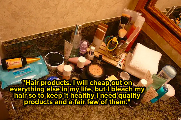 31. And finally, "Hair products. I will cheap out on everything else in my life, but I bleach my hair, so to keep it healthy, I need quality products and a fair few of them."
