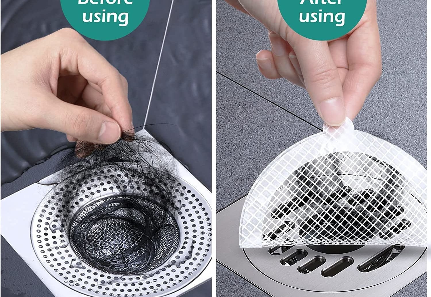 6. This pack of disposable shower hair catchers you simply place over your drain so your hair doesn't go down and clog it.