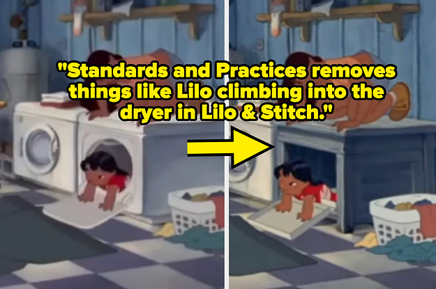 2. "In animated shows in the US, even ones for adults, people riding bikes must always have helmets and people in cars must have seatbelts on if the car is moving. There's a department called Standards and Practices whose whole job is to prevent 'imitable violence' or other acts that children could imitate and be hurt from. This includes removing things like climbing into a washing machine/dryer (Lilo and Stitch on Disney+) or leaving the park with a stranger (early Sesame Street episodes). Blood is a huge one, as are most body fluids. Dogs can pee, but you can't show urine, and puke has to be a certain color or it won't pass."