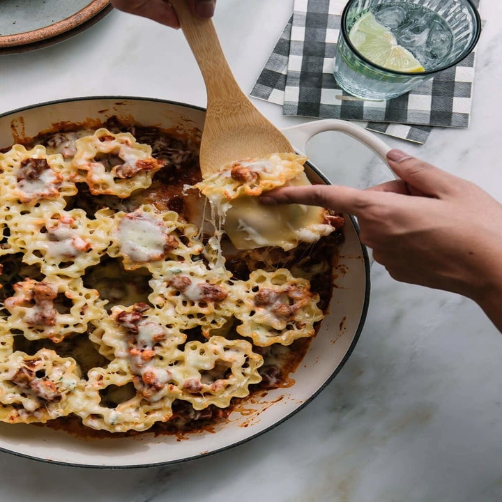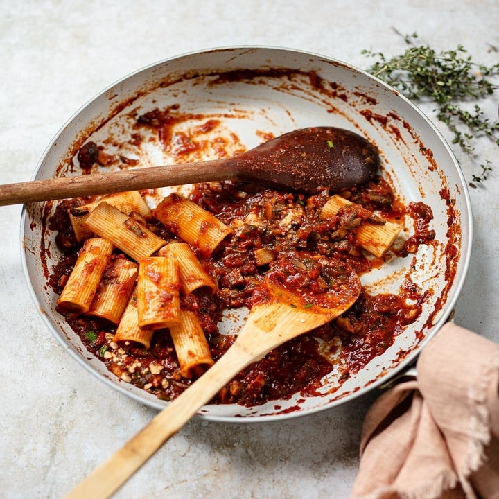 In place of meat sauce, this vegetarian-friendly recipe calls for porcini mushrooms cooked with red wine, crushed tomatoes, garlic, and vegetable broth. Get the recipe for mushroom Bolognese here.