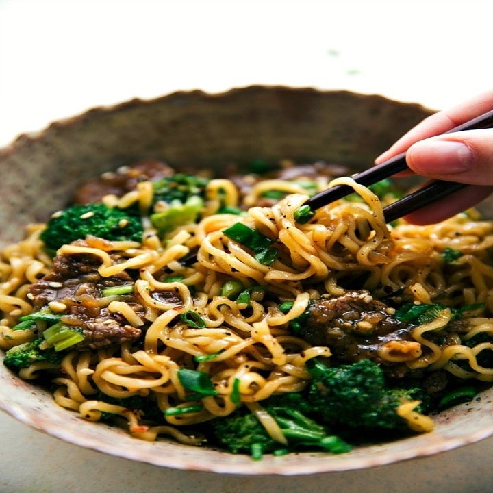 This Chinese-inspired dish starts with packaged ramen noodles, but you can really use whatever pasta is in your fridge like spaghetti, rice noodles, or even fettuccine. Get the recipe for skillet beef and broccoli ramen here.
