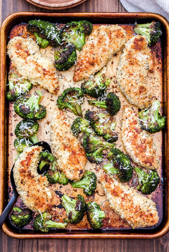 Fresh or frozen shrimp is tossed in a zesty mixture of olive oil, garlic, lemon, and paprika, then it's baked on a single sheet pan with your favorite vegetable.