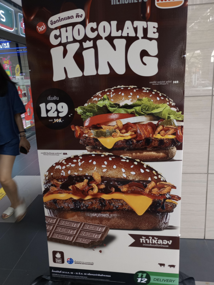 27. A chocolate burger may *sound* gross, but I have a weird investment in trying it. I must know how it tastes. But to do that, I'd have to go to Thailand.
