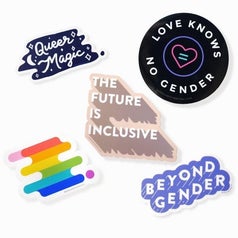 19. A wide variety of magical queer pins and stickers to add to the pin-tastic collection you’ve started on your backpack, jean jacket, and tote bag!