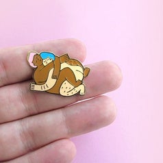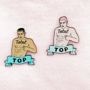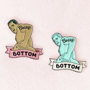 Get them from pansy ass ceramics for $18 each: the embrace pin (available in three styles), rainbow fart pin, total top pin, or bossy bottom pin.