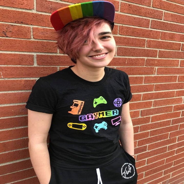 Get them from QueerestGear on Etsy: the lesbian pride hat for $30 and gaymer T-shirt for $23 (available in sizes XS–4X).