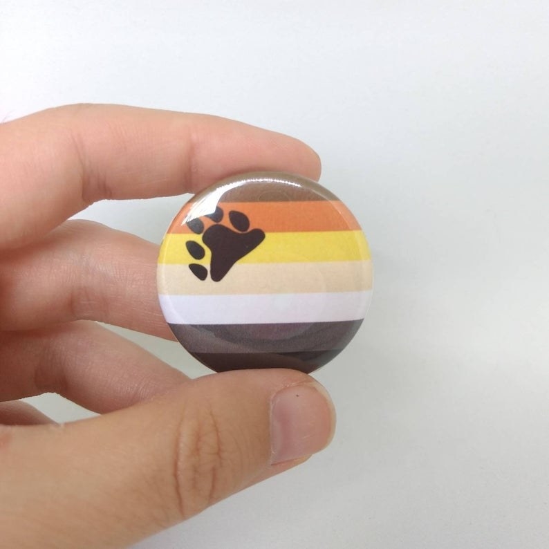 Get them from QueerestGear on Etsy for $2.50 each: the intersex pride button, bear pride button, or functional lesbian button.