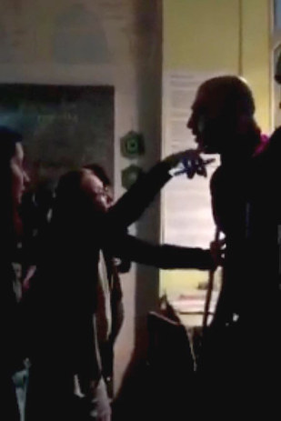 3. A scuffle soon broke out, the post continued, as employees began trying to push the intruders out the door. The fight continued into the street, where, the post read, one of the attackers brandished a knife. Soroush Negahdari, a de-facto manager at the Kiwi Café, told BuzzFeed News on Tuesday that no patrons were hurt though several employees had minor injuries. He also provided these exclusive screenshots from a video of the incident: