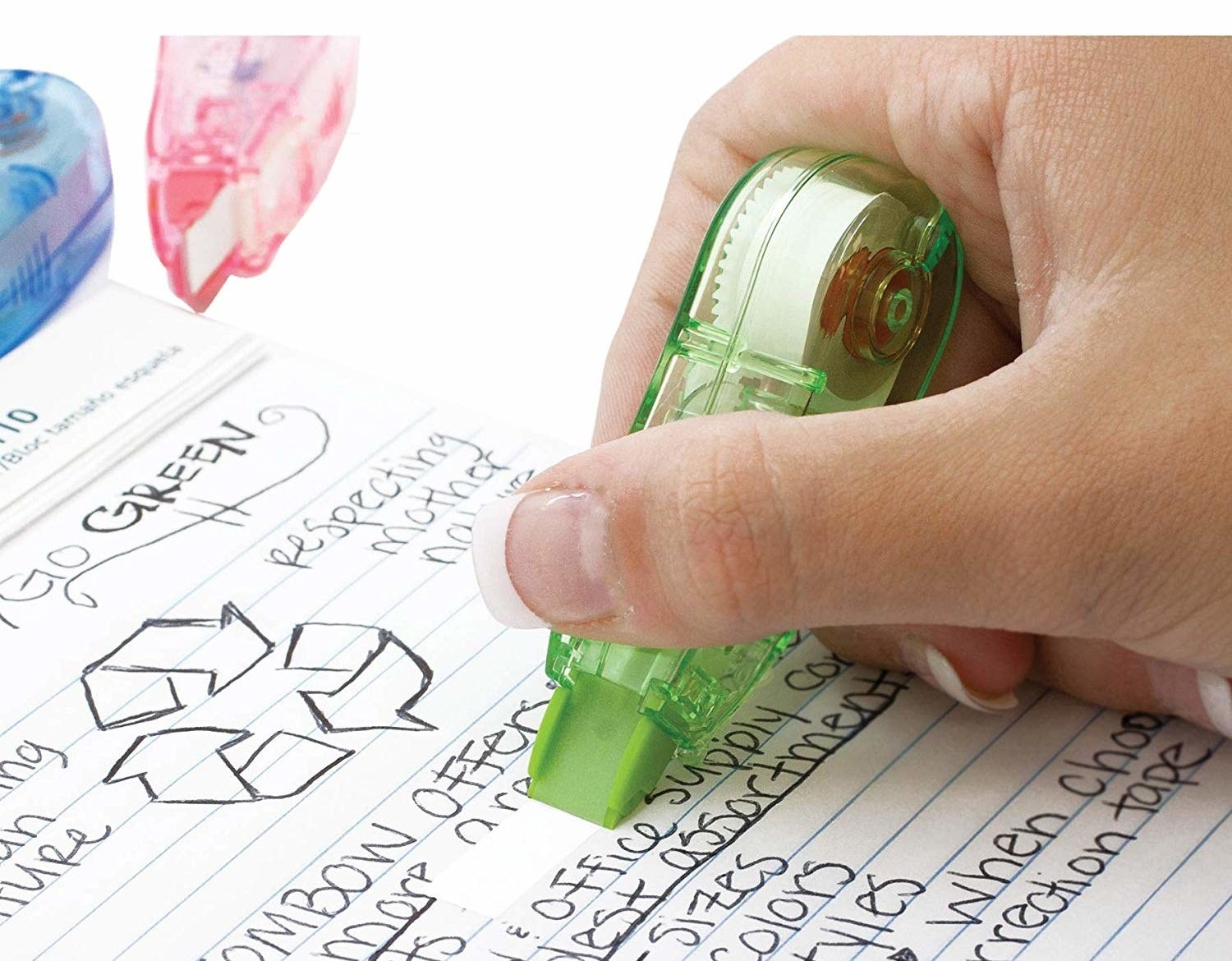 Promising review: "I love these correction tapes! You don't have to worry about dry time like with liquid products. The tape comes out nice and smooth and perfectly covers all the 'oops.' Good design and I love the colors!" —Sara Briggs
