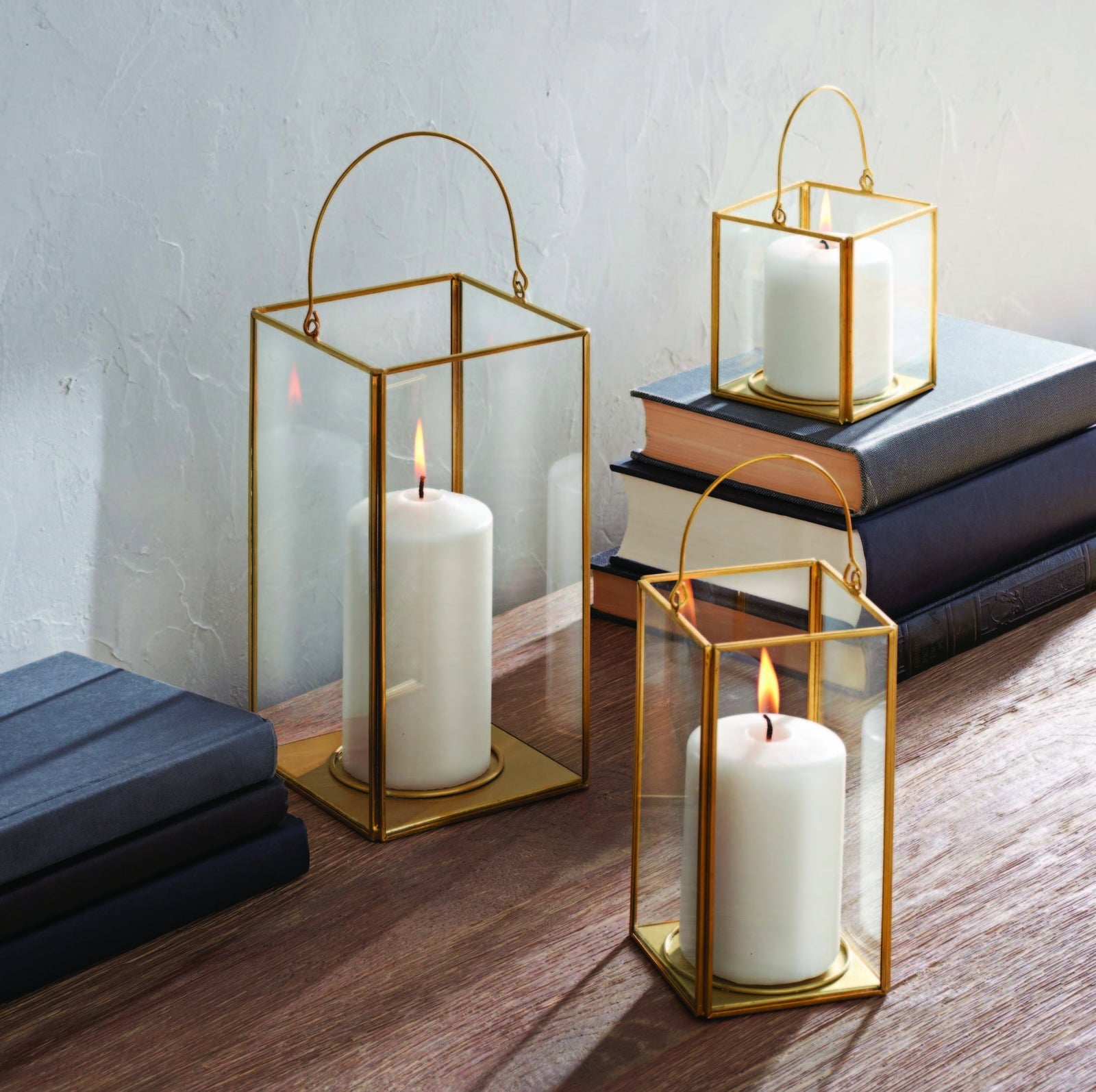20. A glass lantern with gold accents you can place a tall candle inside for a chill ambiance you never knew you wanted.