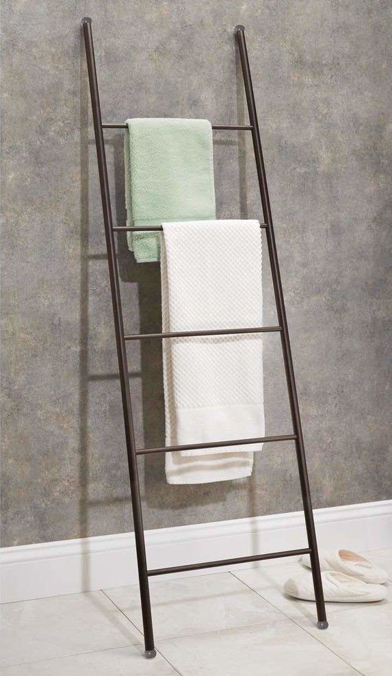 10. A freestanding ladder, so instead of hanging your towels on the back of your bathroom door you can display them in a manner that would make Queer Eye's Bobby Berk proud.