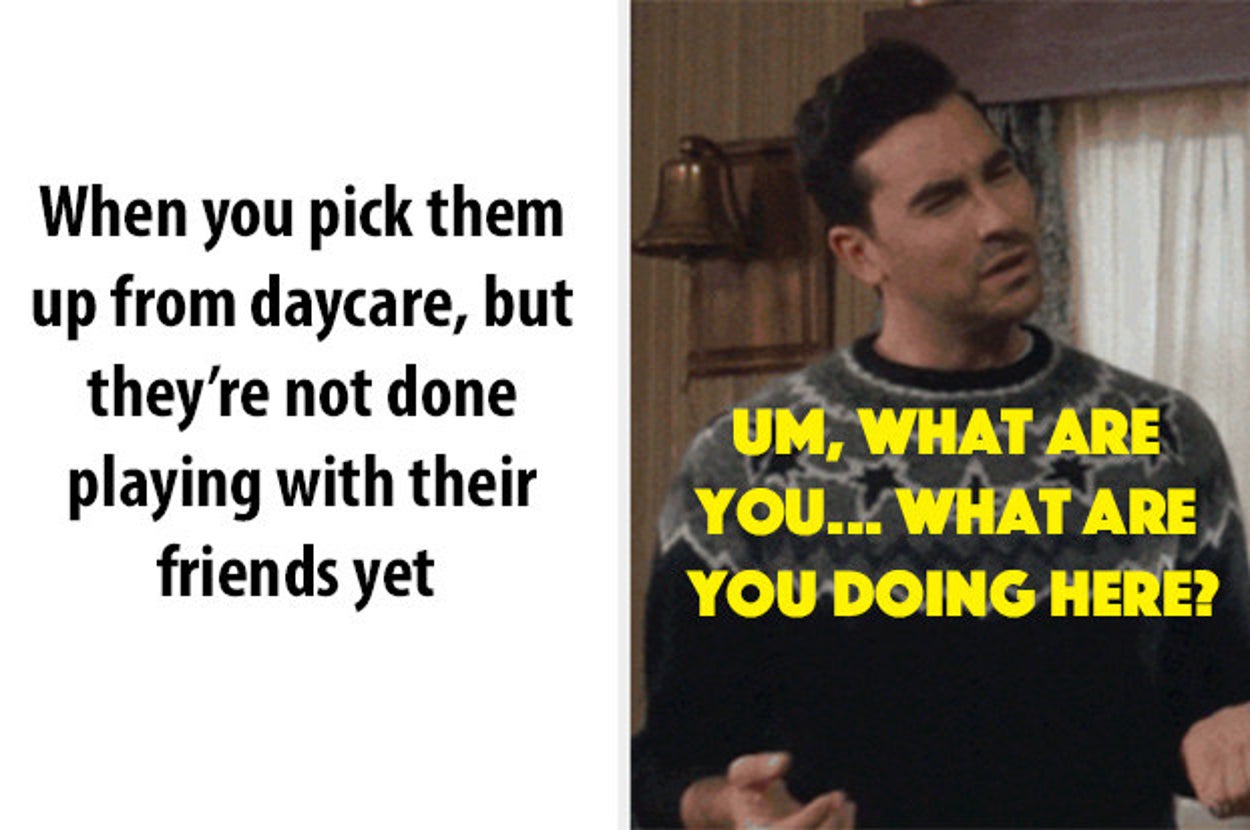Community·Posted on Aug 7, 2019Here's What Your Toddler Is Actually Thinking, As Told By David From "Schitt's Creek"They're both dramatic AF, don't @ me.by Hannah HughesCommunity ContributorApproved and edited by BuzzFeed Community TeamFacebookPinterestTwitterMailLink When you change their poop-filled diaper. Tap to play GIF Tap to play GIF When they want to drink out of a "big kid cup" and scream until you let them, and then they spill it all over themselves. Tap to play GIF Tap to play GIF When you say "I think someone needs a bath." Tap to play GIF Tap to play GIF When you use your hand to stop any water/soap from going into their eyes during their bath. Tap to play GIF Tap to play GIF When they pull out random scraps of food from their diaper and hand them to you. Tap to play GIF Tap to play GIF When you're out in public and they insist on touching EVERYTHING around you. Tap to play GIF Tap to play GIF When you leave a glass on a lower surface (JUST FOR A SECOND) and they knock it over. Tap to play GIF Tap to play GIF When you repeatedly say "don't cross the street until Mommy/Daddy has your hand". Tap to play GIF Tap to play GIF When you tell them for the 5th time not to bite when they're tired/hungry/upset/excited. Tap to play GIF Tap to play GIF When they bite you for the 6th time and you sternly say "NO". Tap to play GIF Tap to play GIF When they have to eat vegetables. Tap to play GIF Tap to play GIF When you let them sleep in just a diaper because it's summer. Tap to play GIF Tap to play GIF When you're too tired to make a full dinner so you do scrambled eggs and toast. Tap to play GIF Tap to play GIF When you pick them up from daycare and they're not done playing with their friends. Tap to play GIF Tap to play GIF When you remind them to share. Tap to play GIF Tap to play GIF When you show them Baby Einstein videos. Tap to play GIF Tap to play GIF When you try to get them to use a sippy cup instead of a bottle. Tap to play GIF Tap to play GIF When you read them a bedtime story but they're still wide awake. Tap to play GIF Tap to play GIF And when you tell them how much you love them and that they're the sweetest thing in the whole world. Tap to play GIF Tap to play GIF