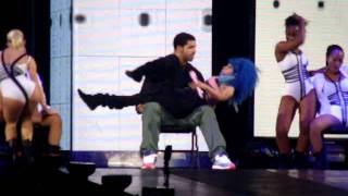 Last night in Toronto, Nicki Minaj busted out her famous lap dance for her special friend Drake on the latest stop of the Britney Spears Femme Fatale Tour. Pretty sure that they even snuck in a kiss.......