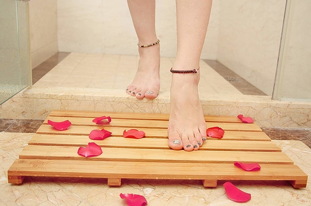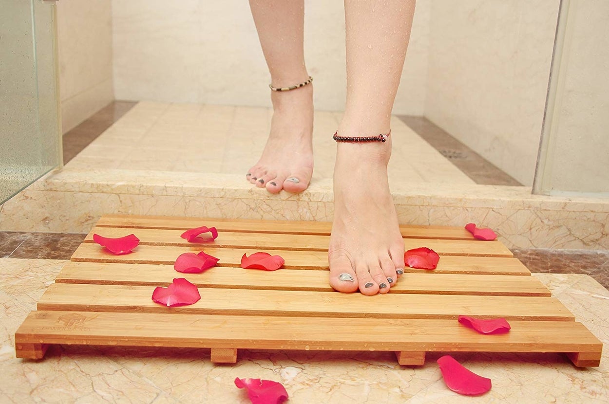 12. A bamboo-slated mat to naturally resist mildew and mold while you're being mentally transported to the spa of your dreams.