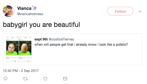 @JusticeTierney GIRL YOU'RE ABSOLUTELY STUNNING DON'T LISTEN TO THOSE LITTLE BOYS 💖 if you were a potato i'd eat yo… https://t.co/ox8Zy2Avrb