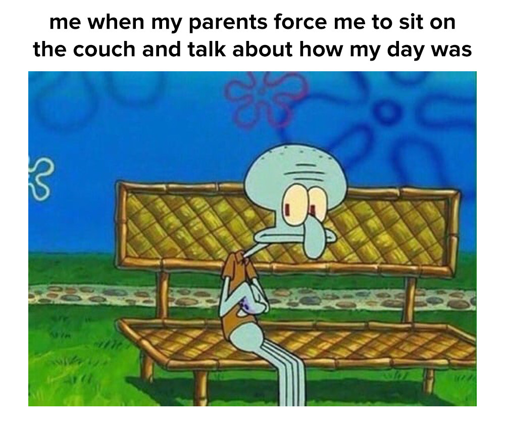 19. Like, heading straight to your bedroom after dinner? Nup, there needs to be ~family time~ because you've been in there all day.