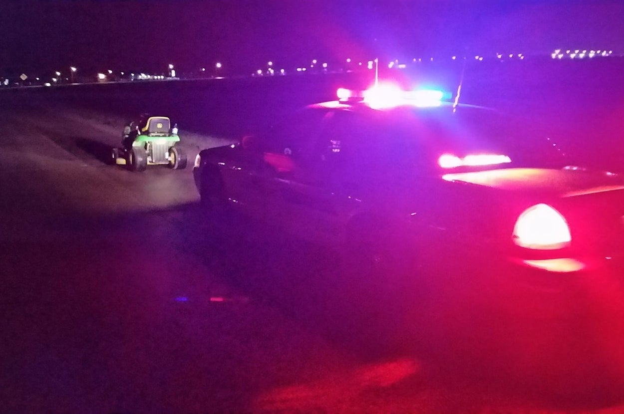 Police in Manitoba say they pulled over an impaired driver cruising down the street on his lawn mower to get smokes from a nearby gas station.