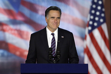 Former Massachusetts Gov. Mitt Romney pauses as he addresses supporters during his election night rally, Wednesday, Nov. 7, 2012, in Boston. David Goldman / AP