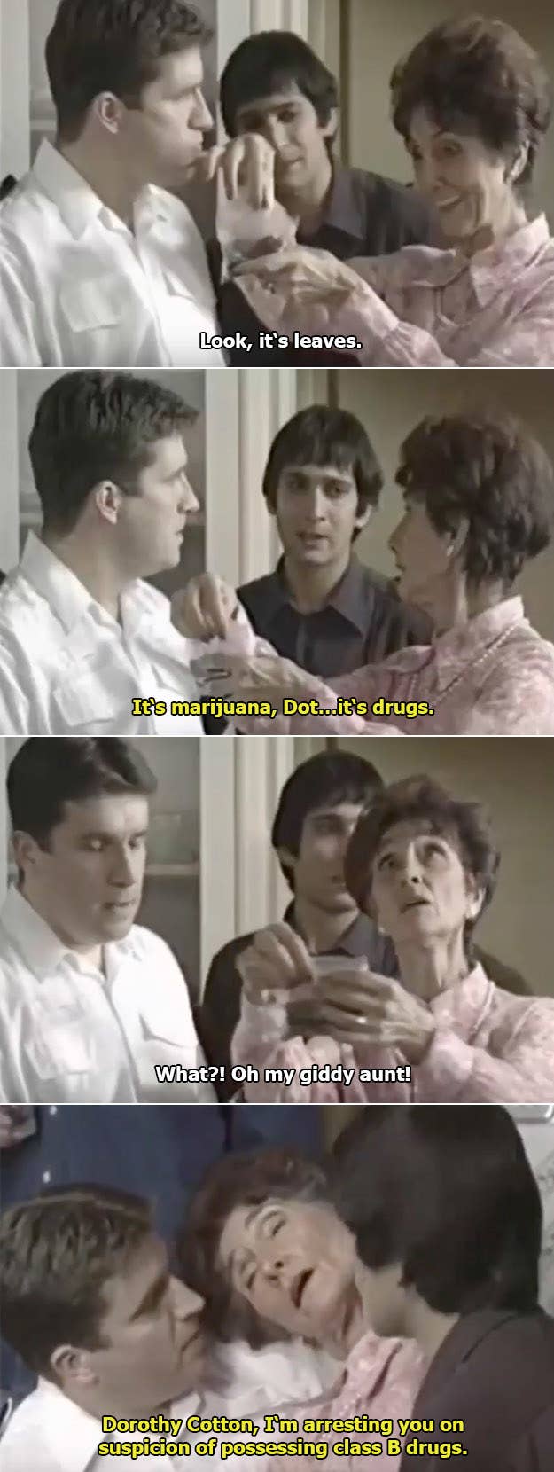 1. When Dot Cotton got arrested after mistaking cannabis for herbal tea and serving it to a policeman.