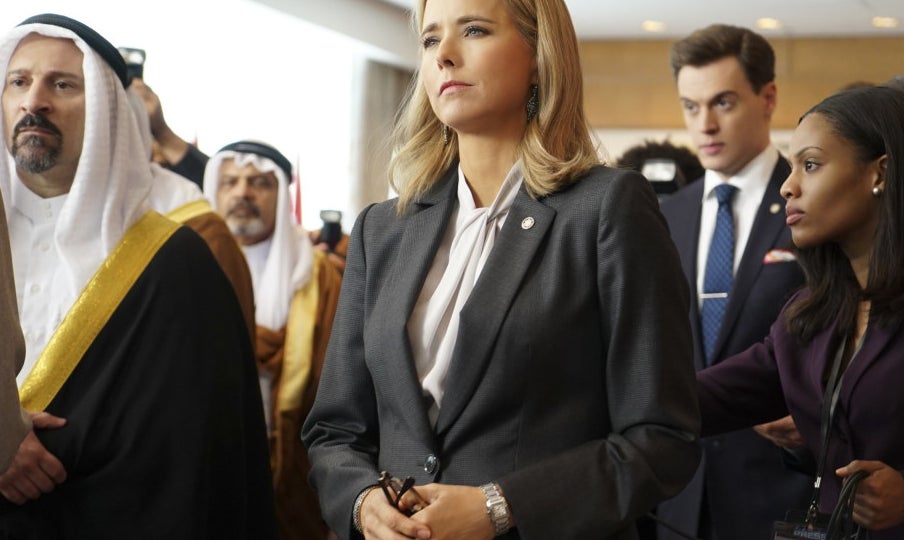 To that end, setting Madam Secretary inside the foreign policy-focused State Department proved invaluable because it meant the show would rarely have to deal with more incendiary domestic issues. “Foreign policy, with some exceptions, tends to be something that becomes partisan after the fact,” she said. “When there's a big catastrophe or problem or something needs addressing in a foreign country, the first move is problem solving. Later it becomes partisan, that it wasn't handled correctly.” In fact, Madam Secretary was so successful in maintaining its nonpartisan plan that it wasn’t until the third season that the president’s political party was revealed. And even that was measured: Dalton ran as an independent.
