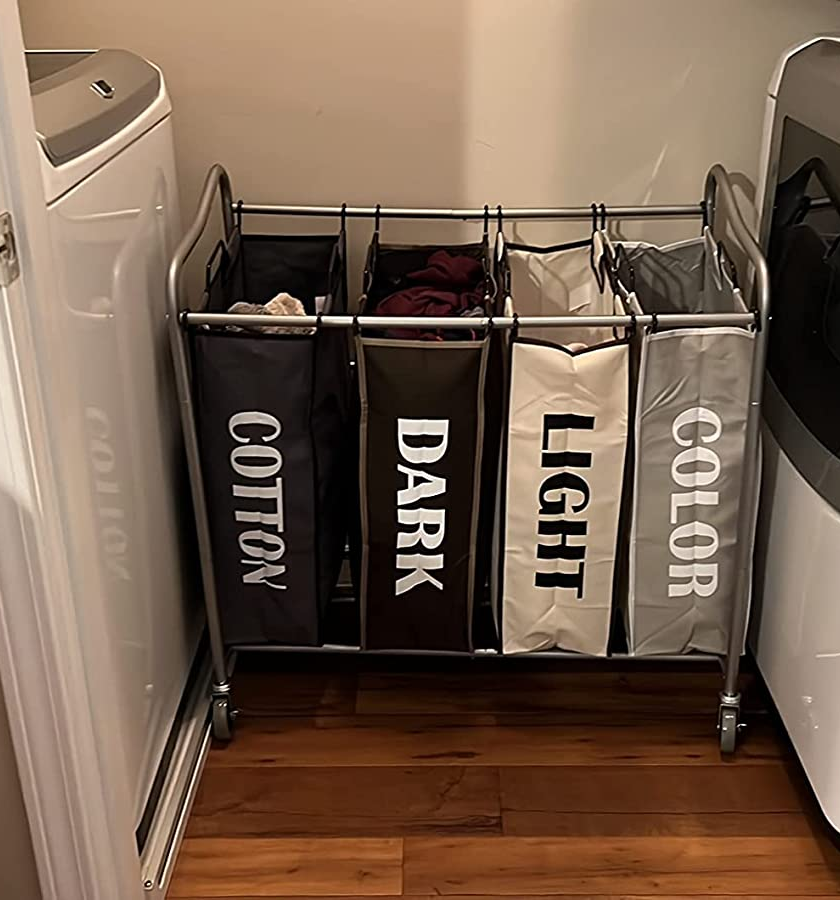 39. A handy dandy rolling laundry sorter to make separating your darks, lights, delicates, and all other washables sooo much easier. You'll never have to shuffle through your *current* endless abyss of a laundry basket ever again!