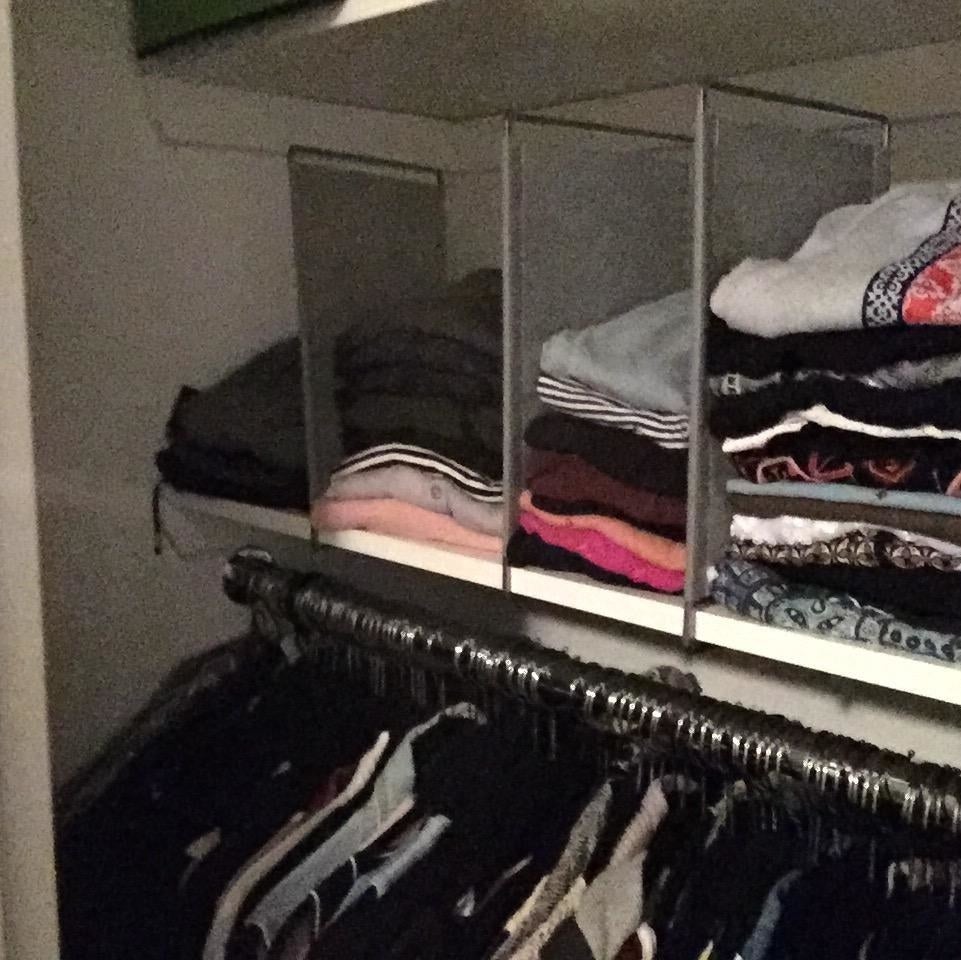 28. Shelf dividers to finally put an end to your stuffing tendencies. We're all guilty of it one way or another, but these handy separators will take care of haphazard shelves *and* help you effectively make use of the vertical space found at the top of your closet.