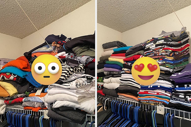 Promising review: "My first reaction was 'Why did I buy this?' because when I opened the box and wasn't too convinced by the way it looked. Then I gave it a try with a couple of shirts I had just washed and next thing you know I simply had to do my entire drawer! Everything folds so pretty, neat, and easy. I still couldn't believe it, so I ended up organizing our bedsheets and towels. I am amazed at how much of a game changer this is. It's a must-try! I am in love with how beautiful it leaves my clothes." —Jesus Antonio Vedia
