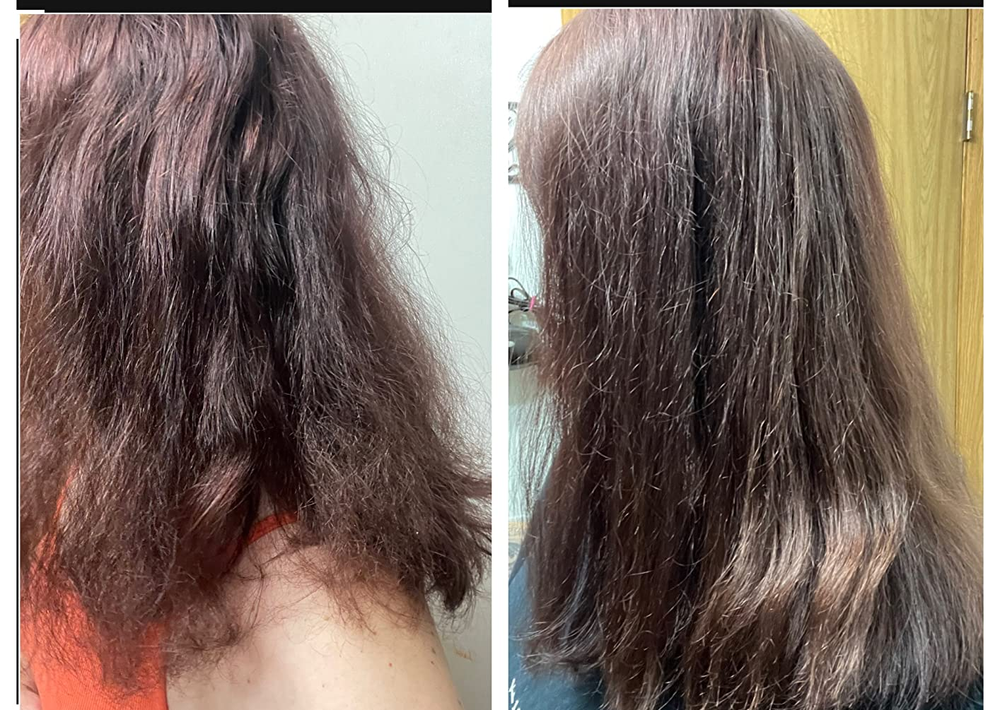 "I have never had a hair product make such a fast and wonderful impact on my hair EVER! I have naturally good hair. Long and shiny.....until I went to Madison Reed and had most of it completely damaged beyond belief. My silky strands felt like hay. They were breaking. I was masking, conditioning, oiling, air drying, not brushing it, and still, it was a total tragedy. I turned to the TikTok gods and found this. ONE USE OF EIGHT SECONDS completely restored my hair to its soft shine down to the ends! If I did not use this myself, I would never have believed it. Thank god it is so reasonable in price. If you are anything like me — your hair is your crown, and when changes happen to it, it is devastating until you find a way to make it work. This stuff is a miracle product. I love it!" —Sonia