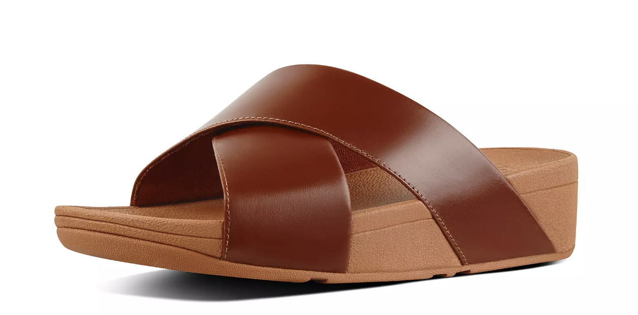 4. Leather slides that are so sleek-looking that you'll want to buy a pair in every color for almost all your friends who don't mind a little wedge.