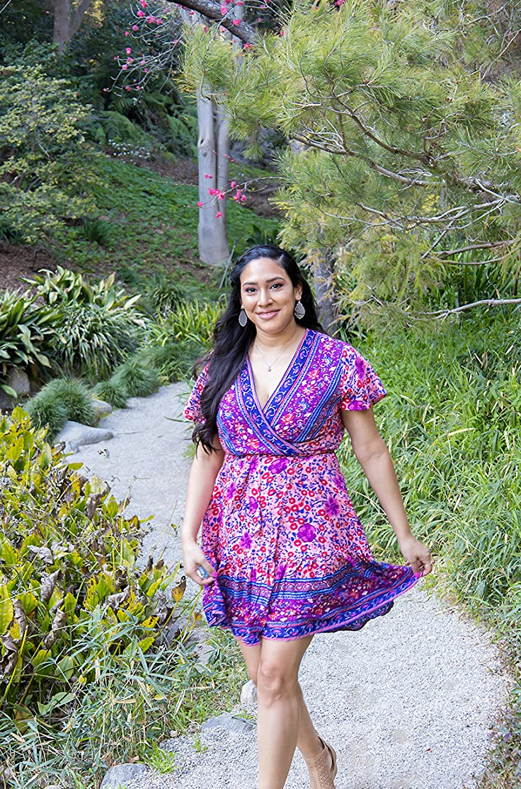 Promising review: "I loved this dress on the model in the pic and thought it would be a great dress for vacation over the summer, so I bought it. As soon as I pulled it out of the package, I was in love! The colors are so pretty and I think they’d [look good on] a multitude of skin tones. This dress is also a true wrap dress, which is great for this pear shape and could probably work for many different body shapes. Also, this one goes to about my knees (I’m 5’6) and the V-neck isn’t as revealing as in the picture, but that could depend on how tightly the dress itself is tied. If you aren’t sure, take a chance. I was honestly surprised at how much I loved the color and the style." —Samantha Emerick