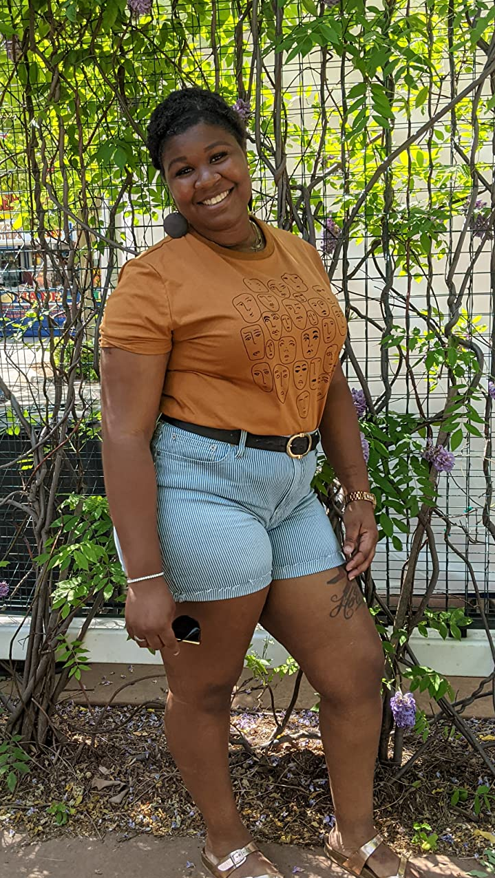 Promising review: "I was pleasantly surprised at how nice this shirt was to the touch. I wore it on a very very hot day to a festival with my kids and I was sweating a lot, but no matter how much I sweat, there were no sweat stains on the shirt, my armpits, my back, nothing. The shirt stayed dry all day even though I was super hot from being out in the heat. It is a very very good quality shirt and could be tied up used as a crop top or tucked in." —Jacquin S.