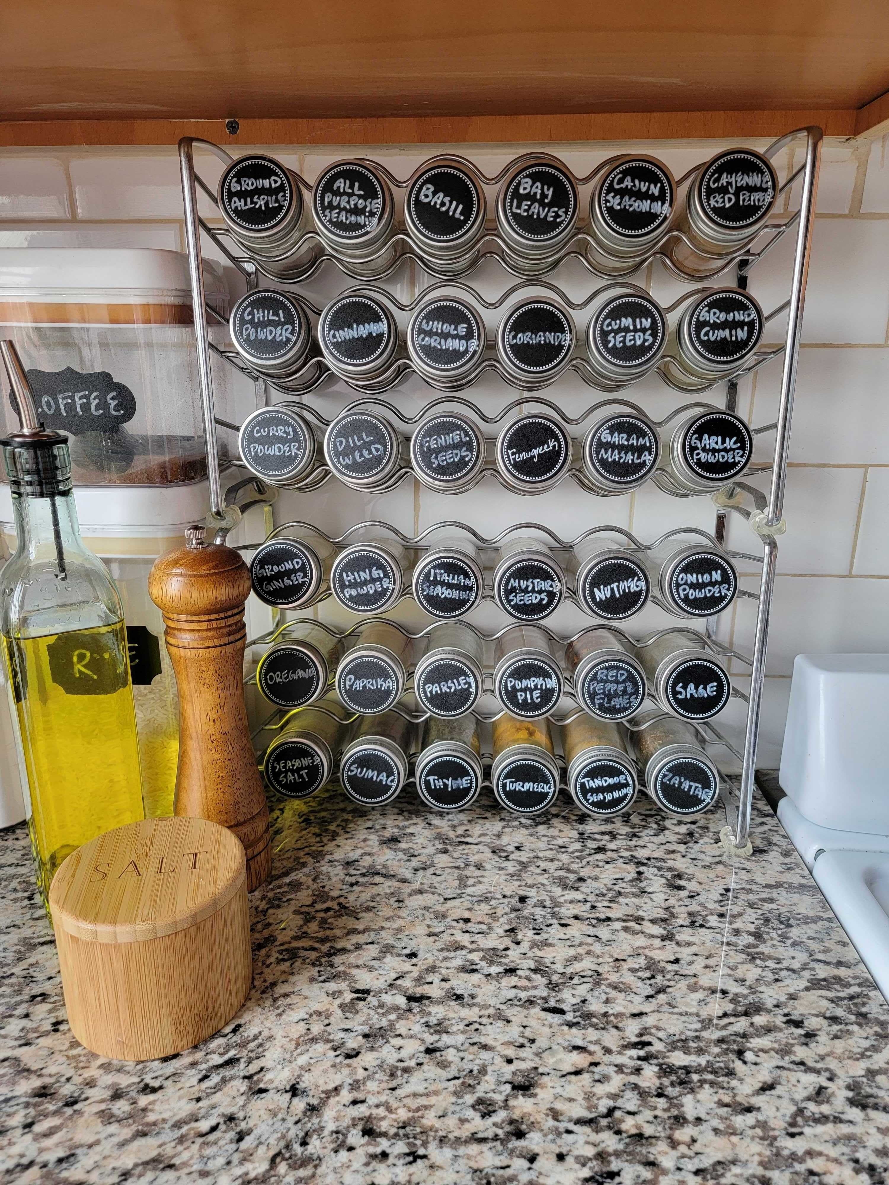 You'll receive 48 blank labels with the spice rack, but you can also buy cuter labels separately if you'd like (I got round chalkboard labels and a chalk marker to make my own — this kit is similar to what I got). Anyone who's ever gone digging in their spice cabinet to find the exact spice you need get get the appeal of having all the labels facing your way and at grabbing distance, but it's also just a super cute thing to have in your kitchen. I've gotten countless compliments on my spice rack from visitors over the years, and I'm just as pleased with it as I first was years ago.