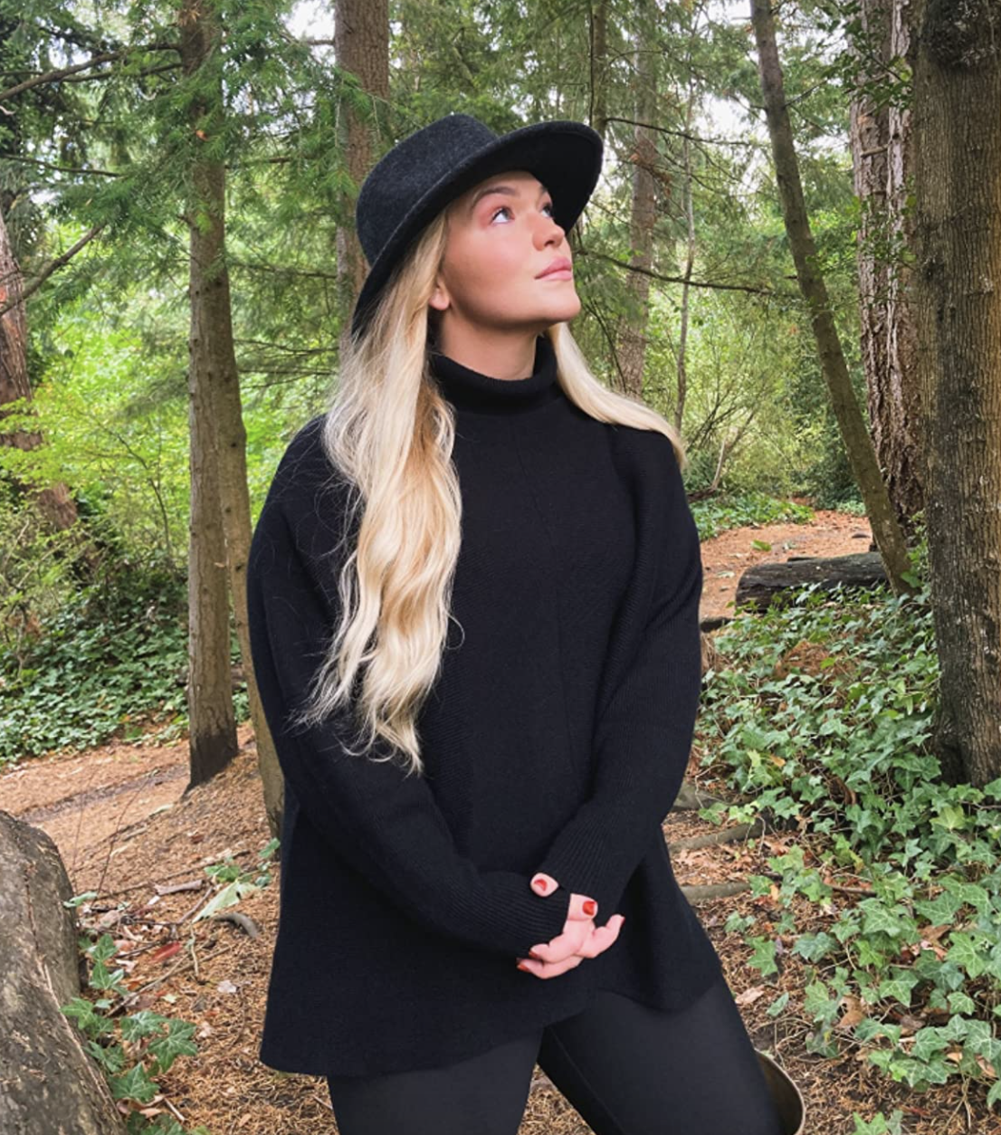 1. A cozy oversized sweater because the sun is great and all, but so is not sweating every time you take a step outside. Now you can look mysterious donning this asymmetrical-hem sweater, perfect for pairing with jeans or leggings on fall outings.
