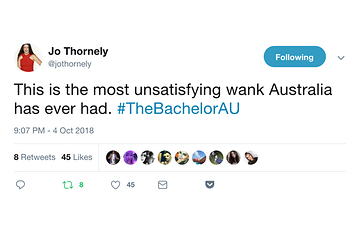 you: love is dead, screw this show me: time to apply some Blistex, drive my Hyundai to the airport and fly with Aircalin to New Caledonia where I’ll spend all my time washing my hair with Tresemmé!!!!!! 🙏🏼 #TheBachelorAU