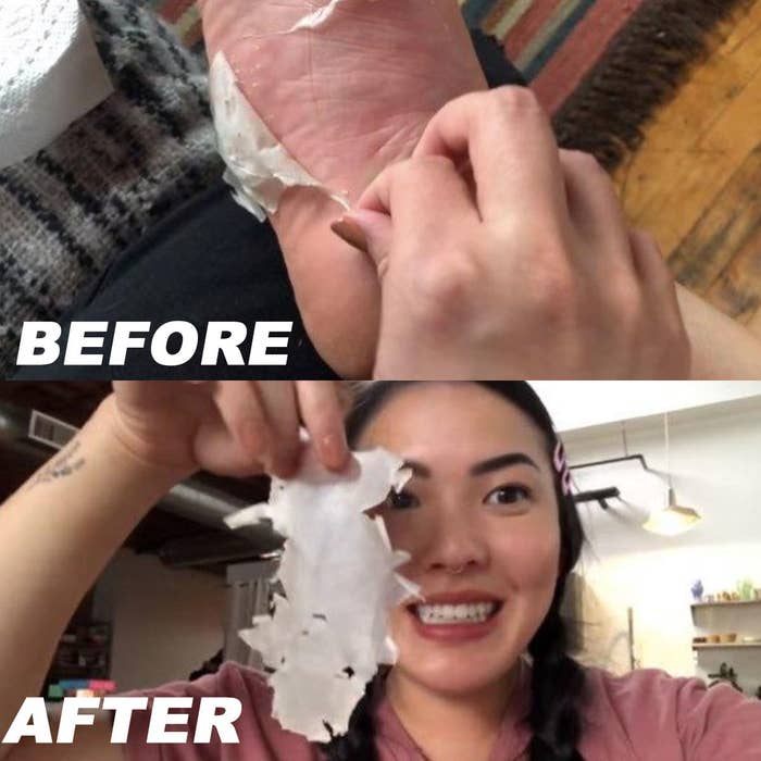 And finally, Meghan says, "I love this brand. It's affordable and comes with TWO packs. Both times I used it my feet felt brand-new. It is so worth it and beats getting a pedicure!"