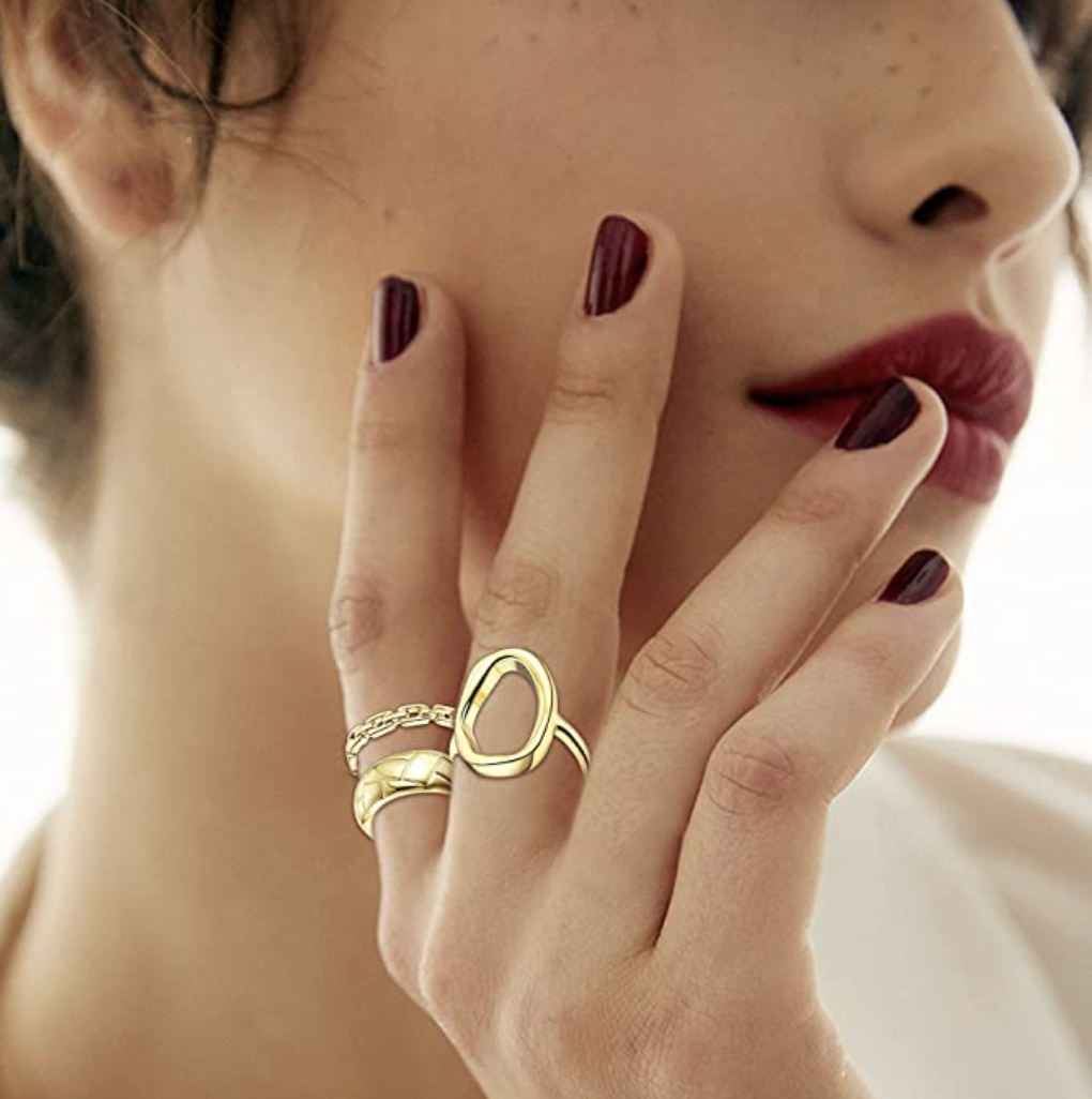 22. I'd stack these gold-toned rings while wearing an all-black or white outfit and let the jewellery do the talking!