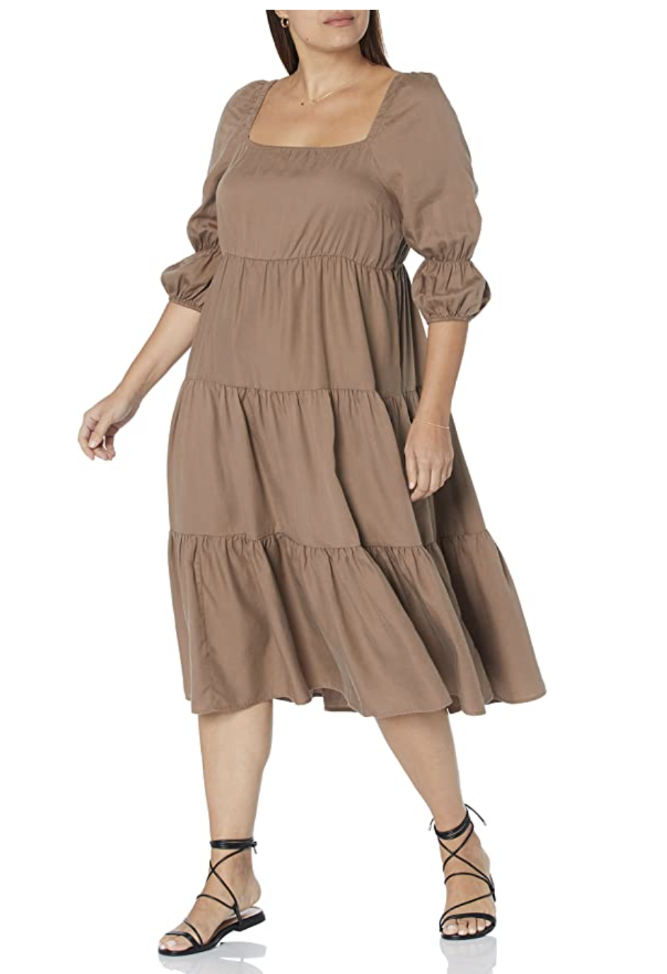 28. I adore the mushroom colour of this puff-sleeved dress that makes summer dressing super easy.