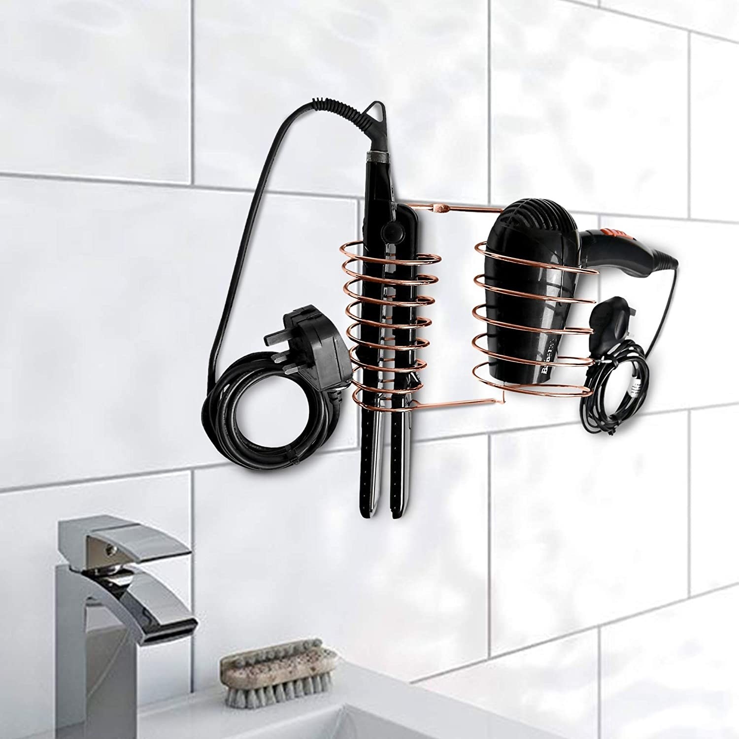 58. Keep your hair tools tidied neatly using this hairdryer and straightener holder.