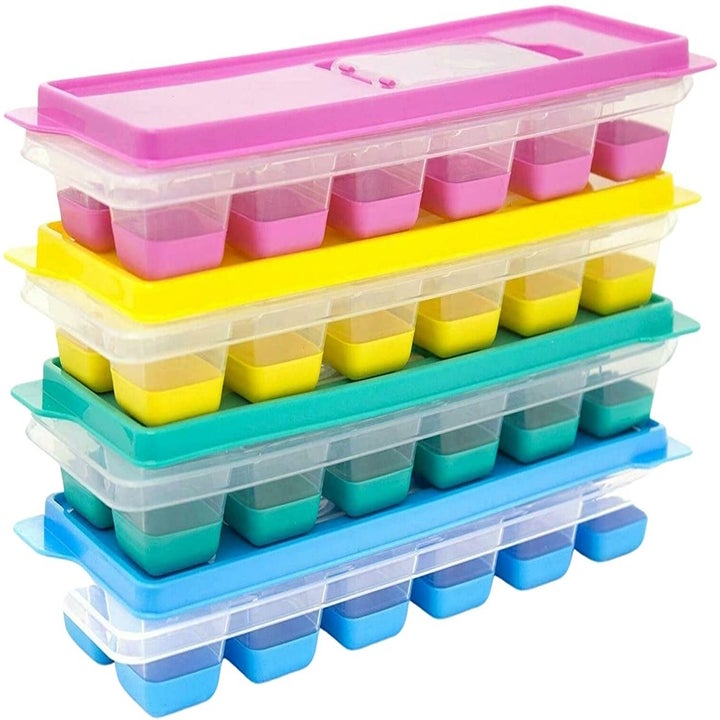 7. This ice cube tray comes with a lid, a scoop, and an ice bin in the bottom, making it ideal for summer drinks!