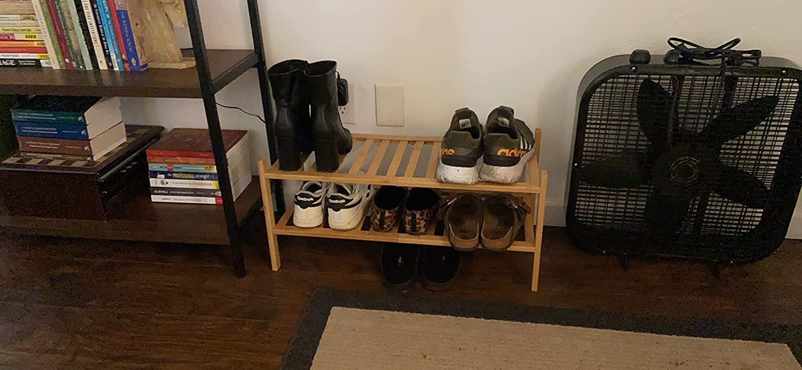 Promising review: "Very lightweight stand but durable. Space is limited in my new apartment and I needed something for my shoes. Purchased a second stand a few days later because I was not only happy with the look of the stand and price but also happy with how well it works in my closet. Second stand doubling as a plant stand outside one closet." —Long Beach, CA