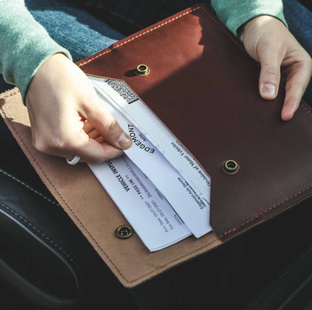 10. A leather documents holder to hold your registration, insurance, and maintenance records neatly in one place instead of crumpled up in your glove box.